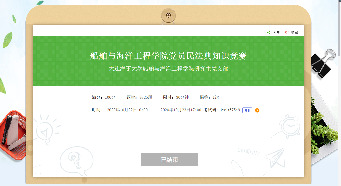 为了加强思想理论学习,深化支部创新建设,船舶与海洋工程学院研究���党支部在2020年10月22日到10月23日举行了线上民法典知识竞赛。