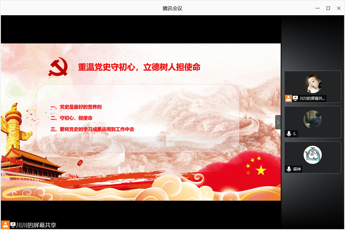 本科学生第三支部委员会(以下简称三支部)组织开展【党课开讲啦】系列活动。29日,第一期线上党课“重温党史守初心,立德树人担使命”开讲,党支部书记刘斯川主讲。
