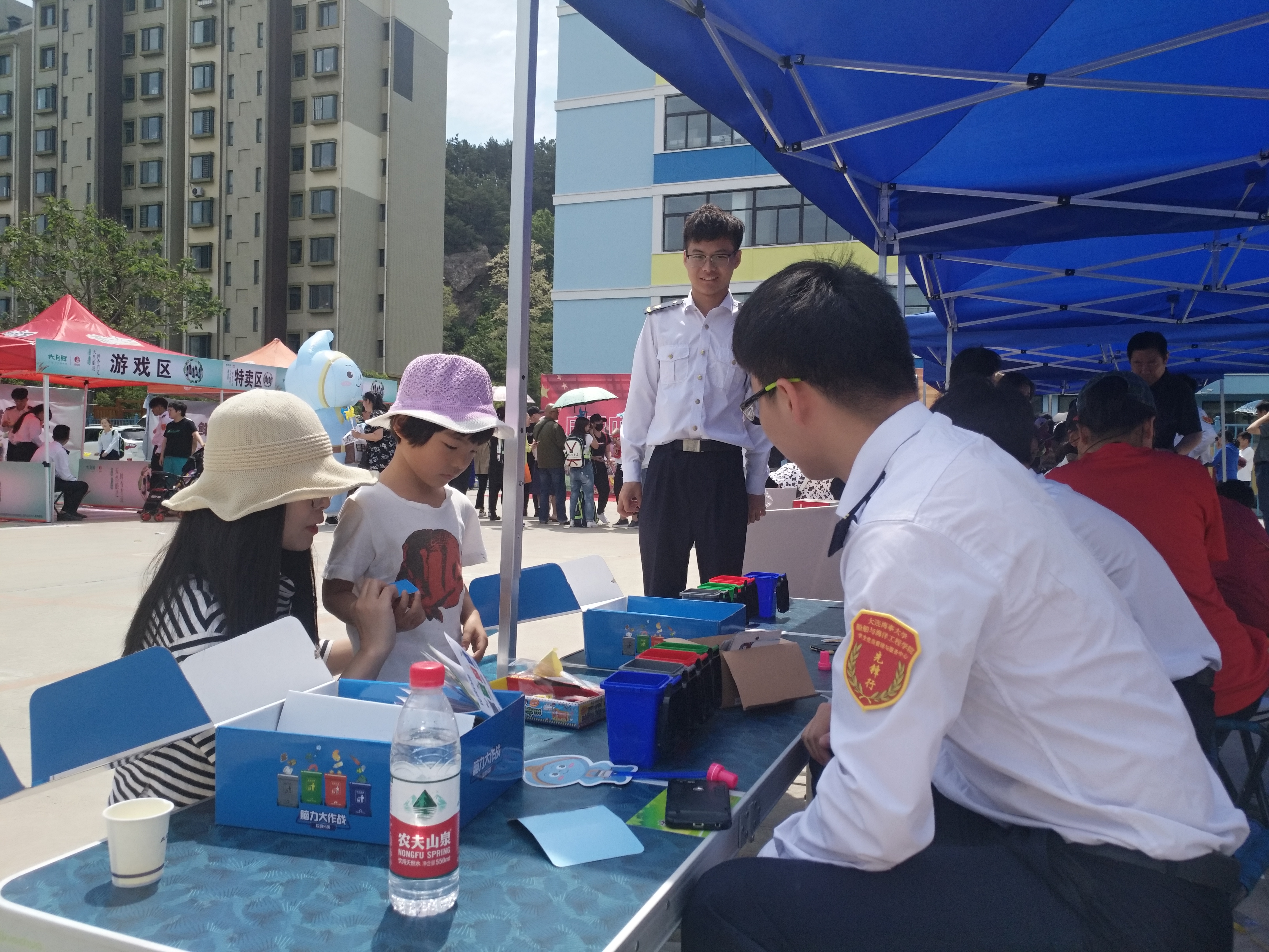 晨光中,中心成员根据前期任务分配积极地投入到会场布置工作中,成员们5人一组,进行帐篷搭建与座位摆放相关工作,并协助调试音响等多媒体设备。中心成员各司其职、坚守岗位,从门票签到、引导入场,到维持秩序、派发奖券,再到保障各展台的活动顺利开展,在中心成员与社区工作人员的通力合作下,各项工作有条不紊的进行。