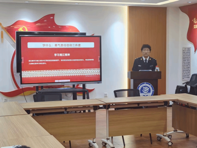 团课上,石钰以湘江战役的历史发展为主线,通过“历史抉择・绝境出征”“浴血鏖战・铁血荣光”“绝境新生・精神永存”“青春践行・使命在肩”四个篇章,系统梳理战役背景、关键节点与精神内核。1934年,红军第��次反“围剿”失利后被迫踏上长征之路,湘江两岸成为敌军精心布设的第四道封���线——30万兵力层层围堵、火力密布,红军面临生死存亡的严峻考验。11月27日至12月3日,为期七日的湘江鏖战正式打响:先头部队冒死抢占渡口、浴血坚守,主力部队突破重围、奋勇前行,尤以红34师6000名将士的后卫阻击战堪称悲壮——他们为掩护主力突围,在腹背受敌的绝境中浴血奋战,师长陈树湘重伤被俘后,毅然断肠明志,以生命践行对党的绝对忠诚;军民同心协力、冒死筑桥,用血肉之躯铺就红军的突围之路,谱写了“向死而生”的英雄壮歌。