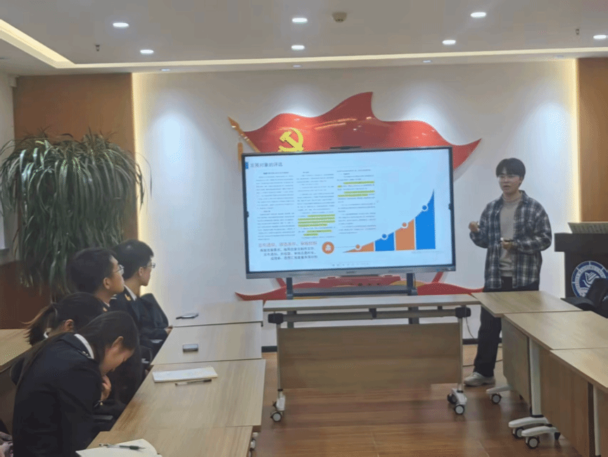 本次培训�2022级团总支副书记唐锐担任主讲人。作为深耕党团工作的“过来人”,唐锐以自身丰富的实践经验为依托,以“理�+案例”的形式,从“入党启蒙、阶段进阶、材料规范初心践行”四大板块,系统解读发展党员工作的核心要点�