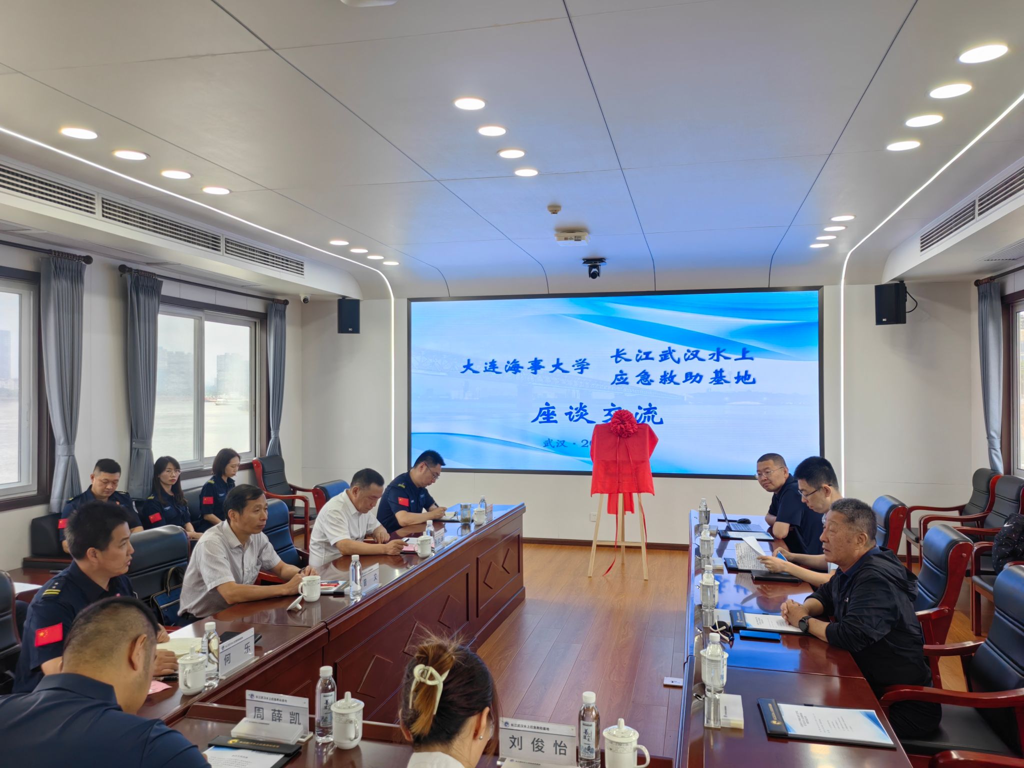 2024�6�19日上午,船舶与海洋工程学院赴长江武汉水上应急救助基地开展本科生�学实习基地挂牌仪式,大连海事大学船舶与海洋工程学院副院长侯远杭、武汉救助基地主任朱文清共同揭牌,长江航道局应急救助处处长曾文出席仪式�