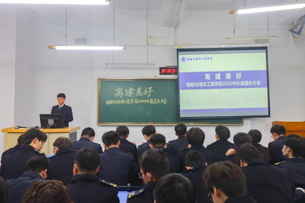 寝室是大学生学习、生�、交流的重要场所,是学生的第一社会、第二家庭、第三课堂,是教育管理的最小单元,寝室文化是校园文化的重要组成部分,具有重要的育人功能。为积极落实响应大连海事大学“寓建美好”寝室文化创建工作要求,充分发挥寝室文化育人作用,着力加强寝室长队伍建设,全面推进中队寝室管理办法与决策,船舶与海洋工程学院2022中队�11�19日晚召开“寓建美好”寝室长大会�2022中队指导员薛航、全体中队干部和全体寝室长参加大会本次大会由中队纪律委员王硕主持�