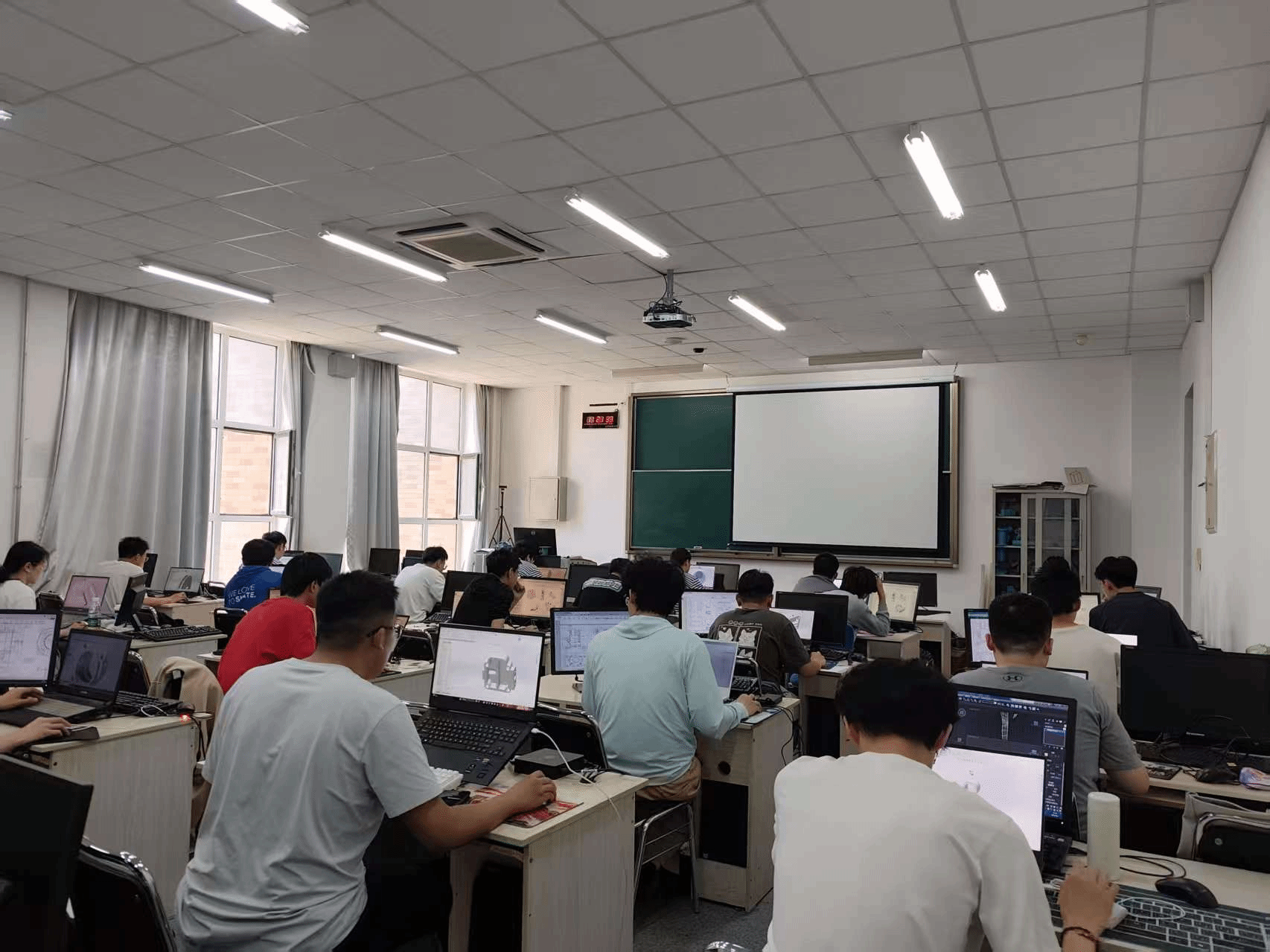 本次省赛参赛人数机械�45人,道桥水利�15人。首次突�100人,分别在四海楼503�504两个教室举行。学生比赛时间持�3个小时,教研室部分老师�与了省赛的监考环节�